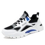 These trendy chunky sneakers feature a bold black-and-white color combination with striking blue accents, delivering a modern urban fashion vibe. Made with high-quality breathable mesh and synthetic leather materials, the upper ensures dry, comfortable wear while maintaining durability. The thick rubber outsole provides excellent anti-slip performance and cushioning, offering stable support and comfort for walking or sports activities. Perfect for daily commutes, workouts, or street-style fashion, these sneakers are the ideal choice for those seeking both style and functionality.