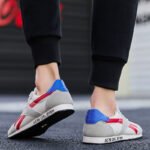 - Stylish Color Combination: Gray base with bold red stripes and a blue heel for a vibrant, fashionable touch.