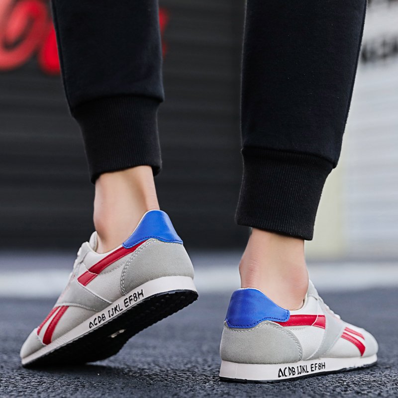 These retro-style casual sneakers feature a classic gray base with eye-catching red stripes and a blue heel design, perfectly blending fashion with energy. The upper is crafted from premium suede and canvas materials, offering softness, breathability, and durability for all-day comfort. With a lightweight design and an anti-slip, wear-resistant sole, these sneakers are ideal for daily outings, casual sports, and trendy streetwear looks.