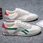 These retro-style casual sneakers feature a gray base accented with green stripes and a bold red heel, delivering a unique vintage-inspired look. Made with high-quality canvas and suede materials, the upper is soft, breathable, and durable, ensuring long-lasting comfort. The lightweight design, paired with a wear-resistant and anti-slip rubber sole, provides stability and grip, making them ideal for commuting, casual outings, or light sports.