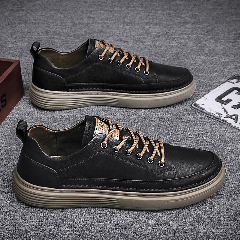 New Fashion Male Sneakers Leather Men Shoes Breathable Non-Slip Sweat-absorbent Flat Shoes Man Spring Autumn Casual Sneaker-sk301