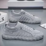 These stylish grey sport casual shoes combine minimalist design with practical functionality, perfect for everyday wear and light activity. The upper features high-quality breathable knit fabric, ensuring a lightweight and comfortable fit while keeping your feet cool and dry. Enhanced with a reinforced protective toe and textured side panel design, these shoes offer both style and functionality. The durable rubber sole provides excellent anti-slip performance and superior traction, delivering a steady stride. With a flexible and lightweight structure, these sneakers guarantee all-day comfort.