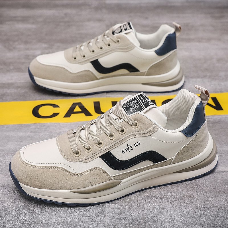 These stylish casual sneakers feature an off-white base with black accents, combining simplicity with a modern design aesthetic. The upper is crafted from premium suede and synthetic materials, offering a soft, breathable, and comfortable feel for extended wear. Equipped with an anti-slip, wear-resistant rubber sole and cushioning for added support, these sneakers ensure stable and comfortable steps. Perfect for daily commutes, casual outings, or light activities, they showcase your effortless fashion sense.