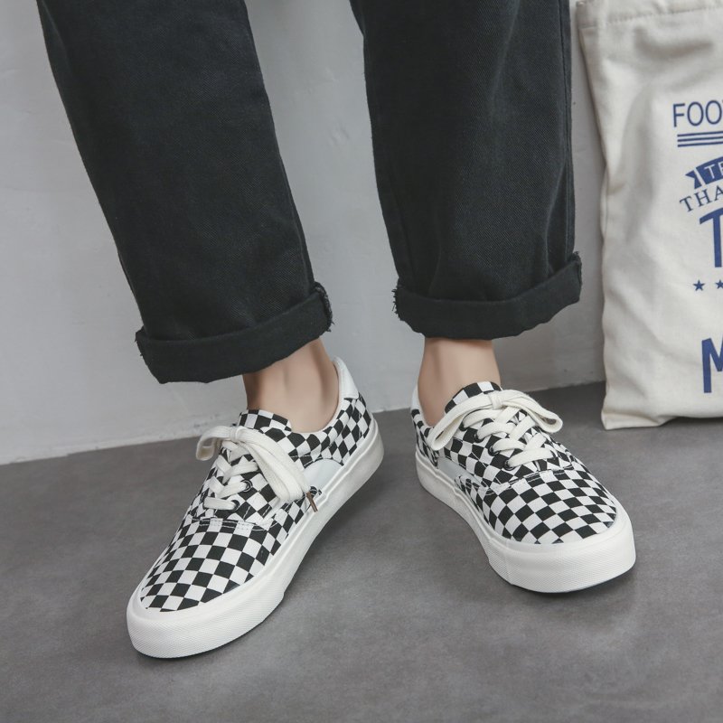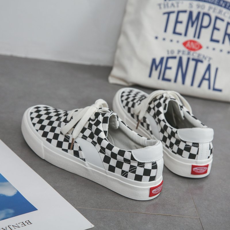 Niche Plaid Low-Top Canvas Shoes with round Toe New Student Street Shot Skateboard Casual Shoes-vt77