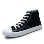 These classic high-top black canvas shoes blend style and functionality, adding a touch of cool to your everyday outfits. Crafted with premium canvas material, the upper is lightweight and breathable, ensuring long-lasting comfort. The white laces and toe cap contrast sharply with the black body, creating a minimalist yet distinctive look. The durable, non-slip rubber sole provides excellent traction, making it perfect for commuting, school, or casual outings. Whether paired with jeans, shorts, or skirts, these shoes effortlessly elevate your style, becoming a versatile staple in your wardrobe. Simple yet extraordinary, classic and timeless—an essential choice for your shoe collection!