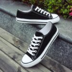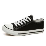 This classic black low-top canvas shoe is crafted with premium canvas material, offering lightweight breathability for all-day comfort. The durable rubber sole provides excellent grip and wear resistance, making it suitable for various occasions. Its minimalist design, featuring white laces and a rubber toe cap, adds a touch of style and pairs effortlessly with jeans, shorts, or casual skirts. Combining aesthetics and practicality, this pair is the perfect choice for daily wear, travel, or casual activities, giving your steps confidence and energy!