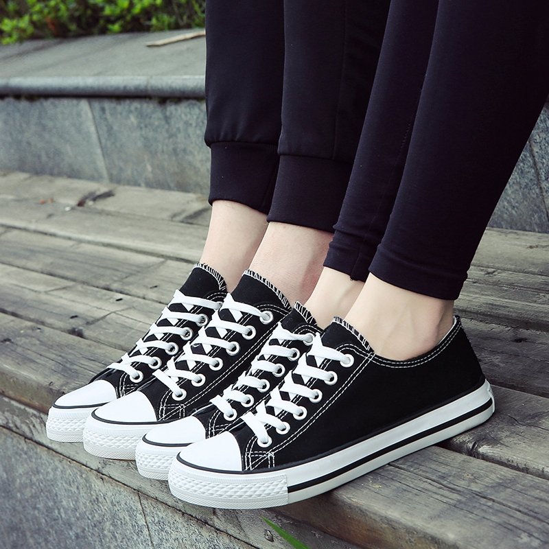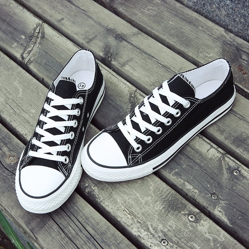 This classic black low-top canvas shoe is crafted with premium canvas material, offering lightweight breathability for all-day comfort. The durable rubber sole provides excellent grip and wear resistance, making it suitable for various occasions. Its minimalist design, featuring white laces and a rubber toe cap, adds a touch of style and pairs effortlessly with jeans, shorts, or casual skirts. Combining aesthetics and practicality, this pair is the perfect choice for daily wear, travel, or casual activities, giving your steps confidence and energy!
