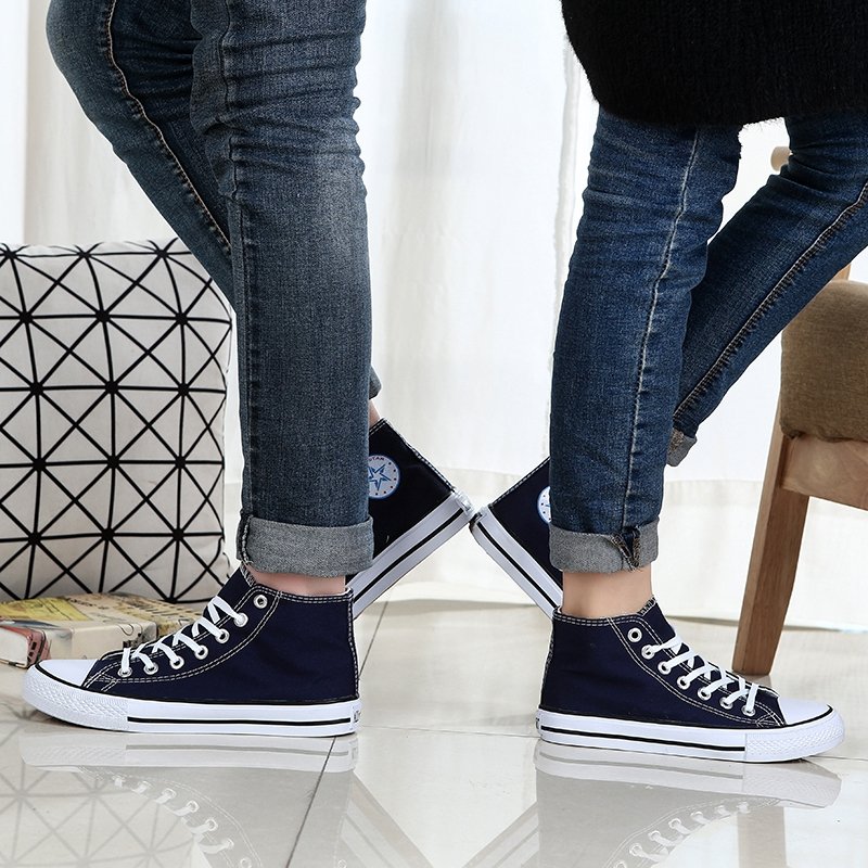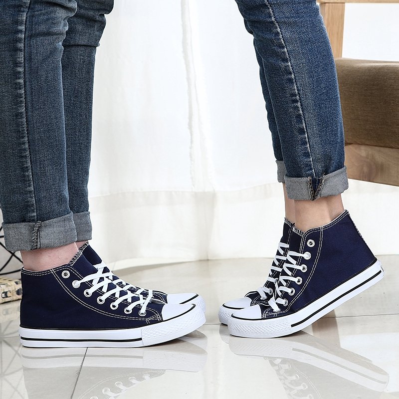 “These classic blue high-top canvas sneakers are the ultimate blend of timeless style and everyday comfort. Featuring a durable canvas upper, breathable design, and a sturdy rubber sole, they are perfect for casual outings or completing your streetwear look. With their unisex appeal and versatile design, these sneakers are a wardrobe essential, offering both style and functionality for any season.”