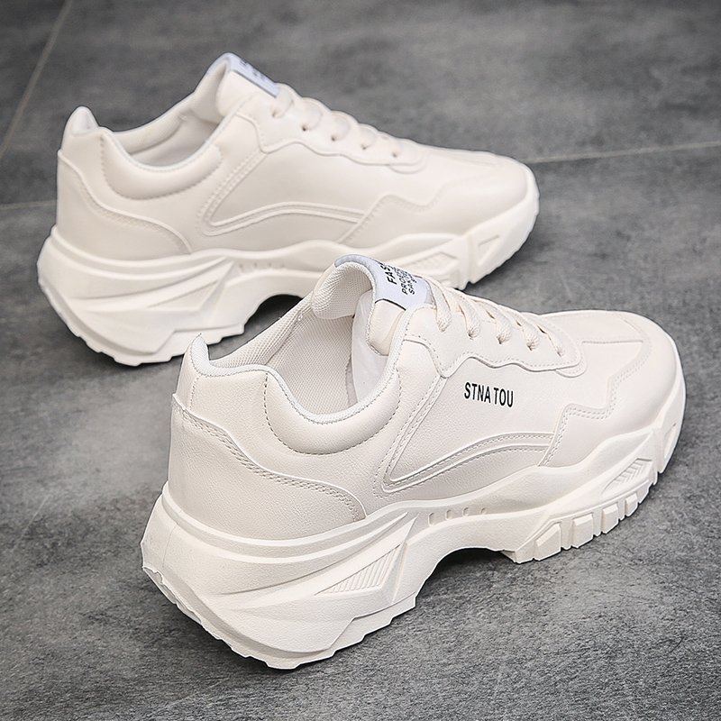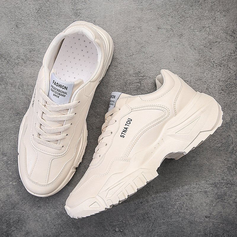 These off-white sneakers feature a simple yet elegant design, combining a chunky sole with a soft neutral tone for the perfect mix of style and comfort. The upper is crafted from high-quality synthetic leather, offering a soft touch, durability, and easy maintenance. The sole is made from high-elastic materials, providing excellent cushioning and support, making it ideal for daily wear, commuting, or casual activities.