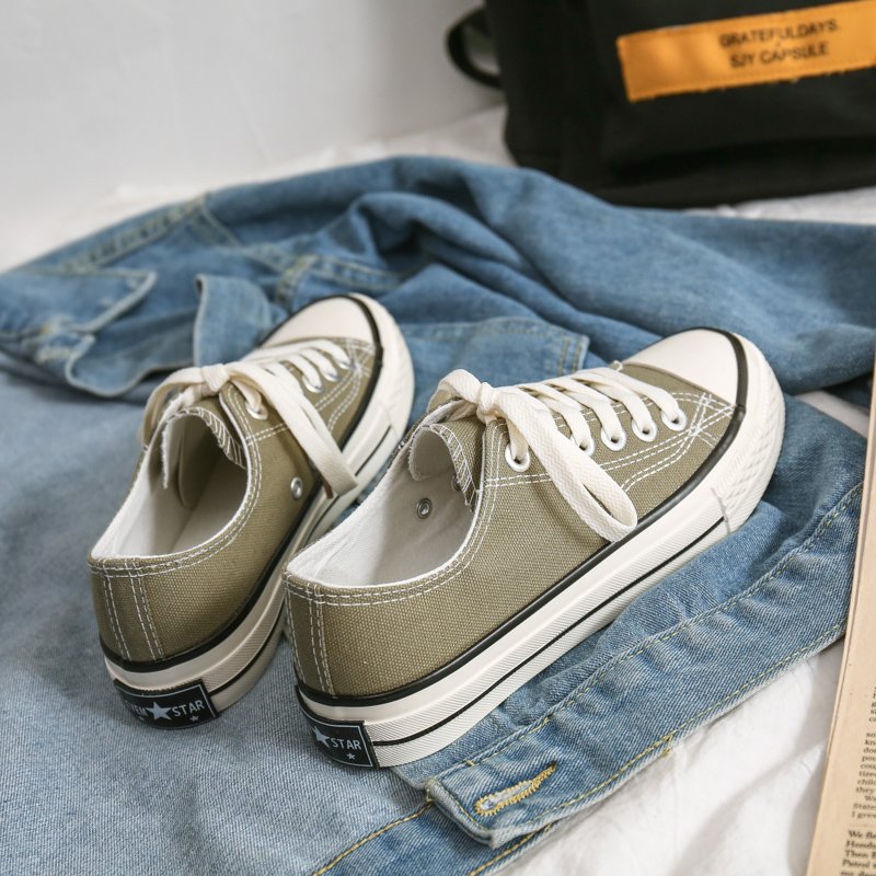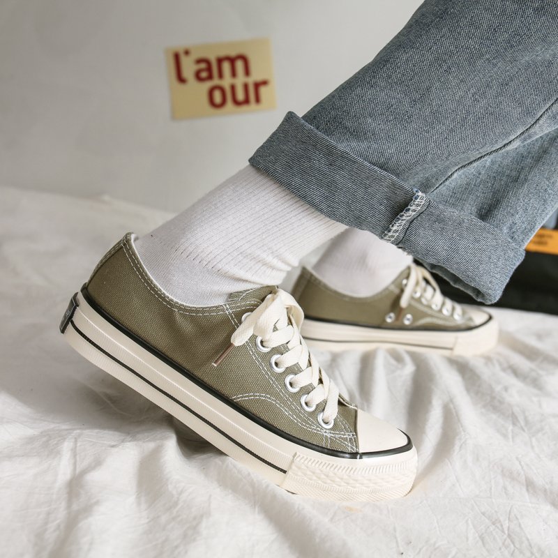 Product Name: Retro Army Green Low-Top Canvas Shoes