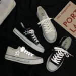 These low-top black canvas shoes feature a minimalist design, combining a classic black upper with white laces and detailed stitching, perfectly blending fashion and retro style. The upper is crafted from high-quality canvas material, ensuring breathability and lightweight comfort for all-day wear. The sturdy rubber outsole is durable, anti-slip, and provides excellent foot support for stability with every step. Whether for casual wear, campus style, or street fashion, these canvas shoes effortlessly match any outfit, making them a must-have wardrobe essential.