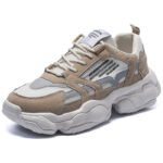 These retro chunky sneakers feature a classic design with a soft beige and light gray color palette, perfect for a variety of styles. The upper is crafted from premium suede and breathable mesh, combining a fashionable look with practical functionality. The thick sole design not only adds height but also provides exceptional cushioning, making it an ideal choice for daily wear or casual outings.