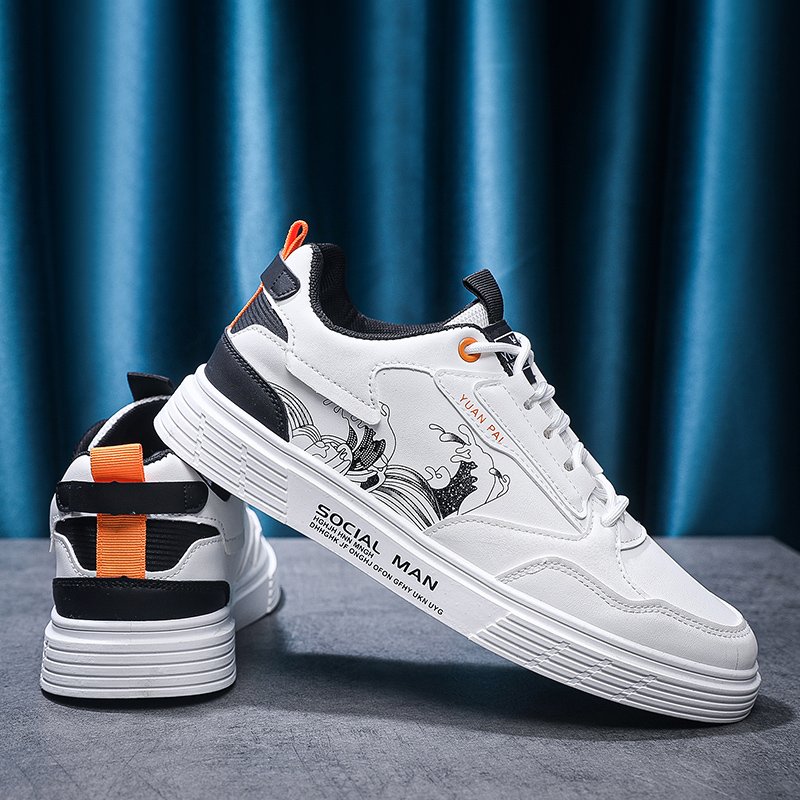 These sneakers perfectly combine style and comfort, designed for individuals who pursue both personality and trends. The upper is made of premium synthetic material, lightweight and breathable, paired with a classic white design for a clean and elegant look. The unique ink-inspired pattern on the side blends traditional and modern aesthetics, showcasing artistic flair and refined taste.