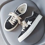 Classic Low-Top Canvas Shoes – Black and White Star Design