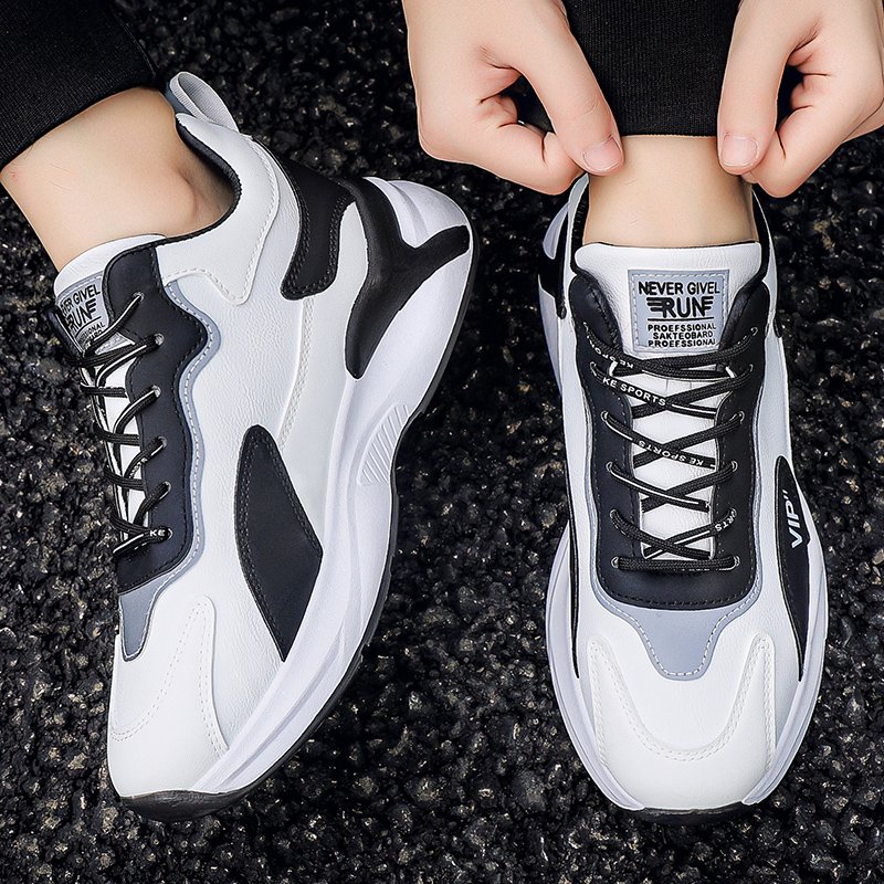 These sneakers feature a classic black-and-white color scheme, delivering a sleek and trendy look. Made with high-quality synthetic leather, they are durable and easy to maintain. The streamlined design adds a dynamic and fashionable vibe. With soft insoles and lightweight soles, these sneakers provide exceptional comfort, making them perfect for daily commutes, casual outings, or streetwear styling.