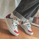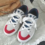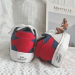 - Design: Red, white, and blue color-blocking with wide shoelaces for a modern and stylish look