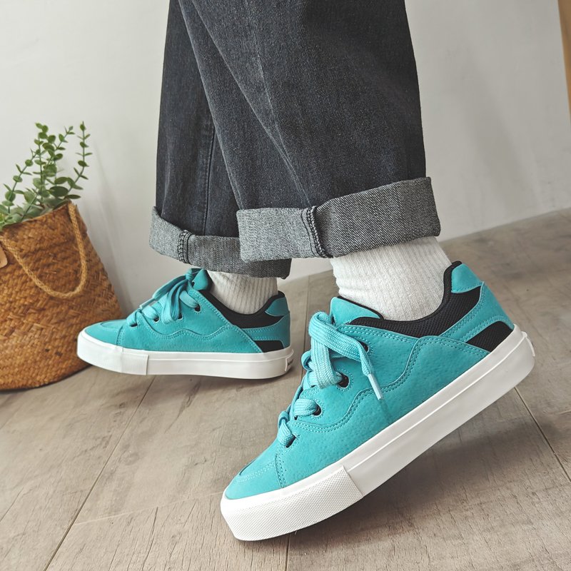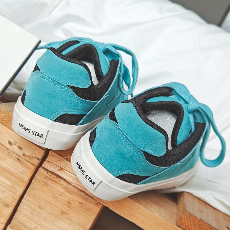 These blue sporty canvas shoes perfectly blend energy and style, designed for those who value fashion and comfort. The upper combines premium suede and mesh materials, offering a soft touch and breathable comfort for all-day wear. The vibrant red color paired with wide laces adds a bold, standout look, ensuring you make a statement wherever you go. The anti-slip, wear-resistant rubber sole provides excellent traction and stability, making them suitable for casual outings, workouts, or streetwear styling. Whether paired with jeans, sportswear, or trendy street fashion, these canvas shoes are the perfect highlight for your outfit.