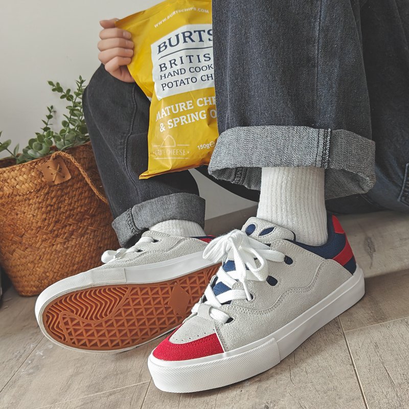 These casual, sporty canvas shoes combine stylish simplicity with ultimate comfort, making them a versatile addition to your wardrobe. The upper features premium suede and canvas materials with a classic red, white, and blue color-block design, exuding energy and style. The wide shoelace design not only adds a unique aesthetic but also ensures a secure fit. The soft, breathable lining and lightweight materials deliver all-day comfort, while the anti-slip, wear-resistant rubber outsole provides excellent traction and stability. Perfect for casual wear, outings, or sporty activities, these shoes are your go-to choice for effortless style and versatility.