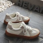 These white and light gray casual shoes draw inspiration from minimalist design and vintage style, offering the perfect combination of comfort and fashion. The upper features a blend of high-quality synthetic leather and suede materials, delivering a refined texture that’s durable and easy to clean. The classic brown rubber outsole adds a retro touch, showcasing understated elegance and timeless appeal. The soft, breathable inner lining conforms to your feet for all-day comfort, while the anti-slip, wear-resistant sole ensures stability and safety. Whether for daily commuting, casual outings, or trendy styling, these versatile shoes will keep you light on your feet and effortlessly stylish.
