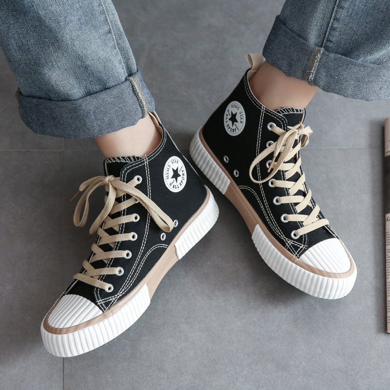 Canvas Sneakers High Lace Up Casual Walking Shoes-a66637