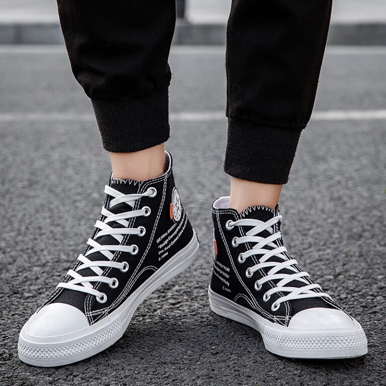 These classic high-top black canvas shoes blend style and functionality, adding a touch of cool to your everyday outfits. Crafted with premium canvas material, the upper is lightweight and breathable, ensuring long-lasting comfort. The white laces and toe cap contrast sharply with the black body, creating a minimalist yet distinctive look. The durable, non-slip rubber sole provides excellent traction, making it perfect for commuting, school, or casual outings. Whether paired with jeans, shorts, or skirts, these shoes effortlessly elevate your style, becoming a versatile staple in your wardrobe. Simple yet extraordinary, classic and timeless—an essential choice for your shoe collection!