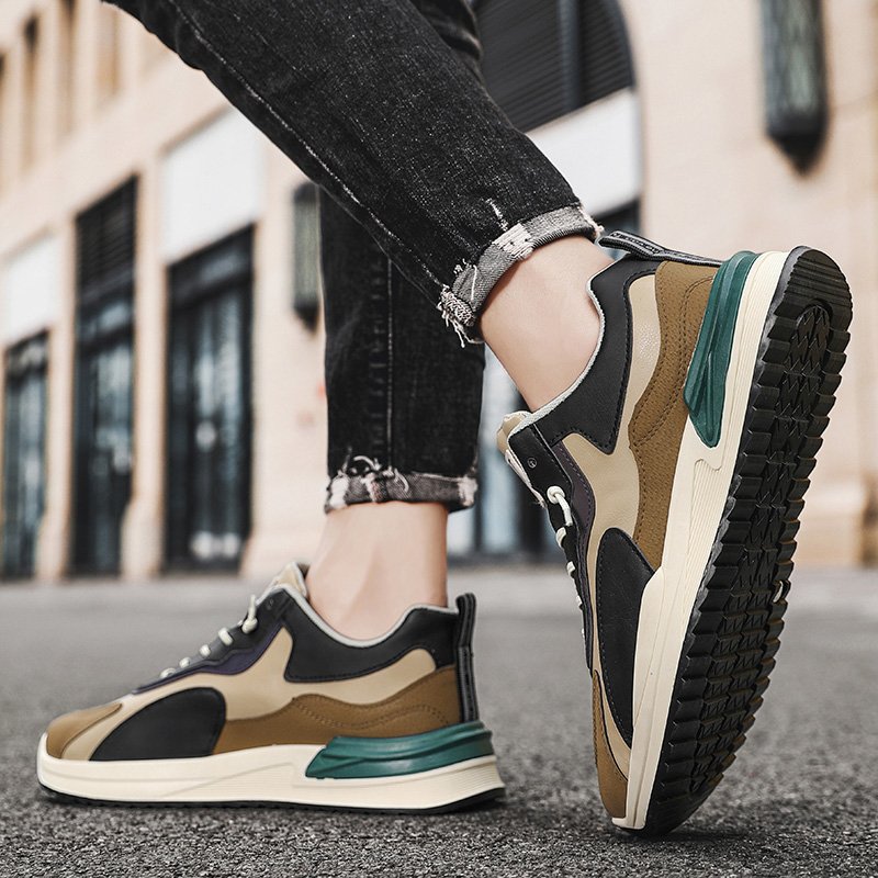 This stylish casual sneaker perfectly combines modern trends with comfort and performance. Made from high-quality materials, the shoe offers a durable and breathable upper for a lightweight and comfortable fit. Its unique patchwork design, paired with classic color combinations, showcases an urban casual style, making it ideal for various occasions, from daily commutes to casual outings. The outsole is crafted from anti-slip, wear-resistant rubber, providing stability and a comfortable walking experience. Let this modern and fashionable sneaker become an essential addition to your wardrobe!
